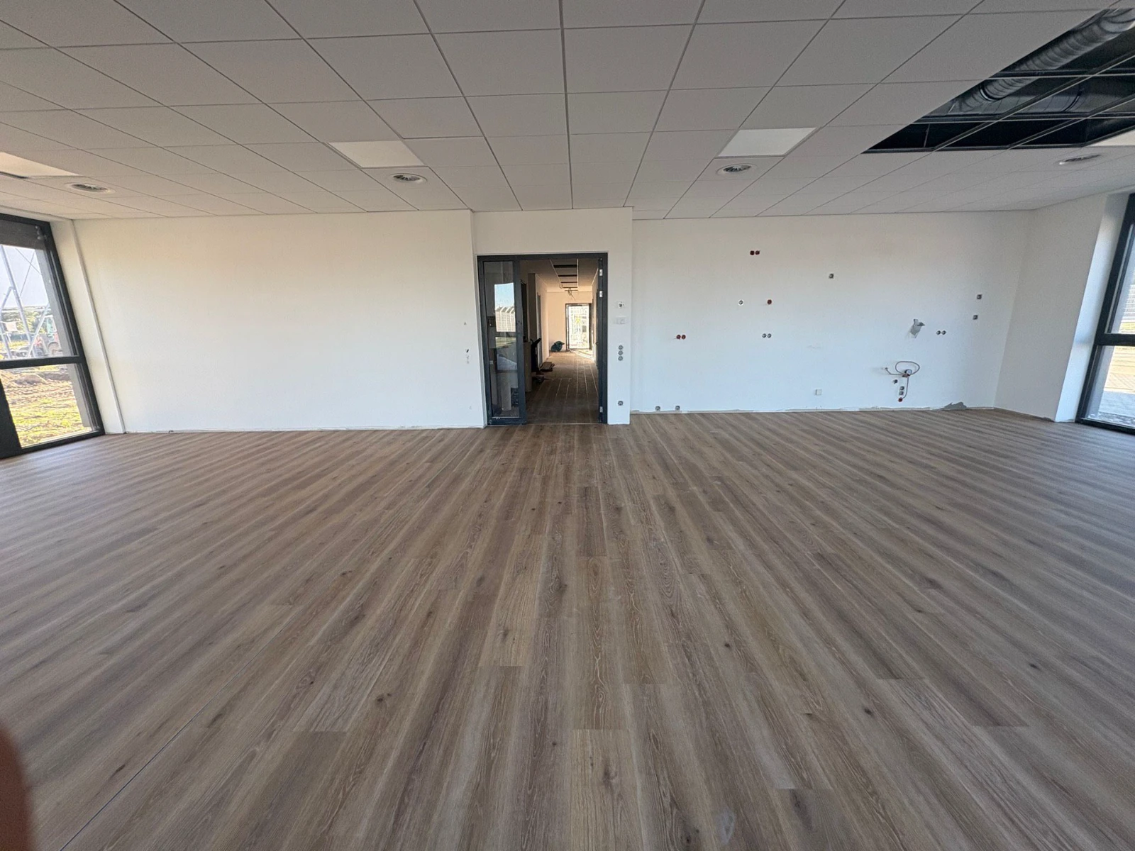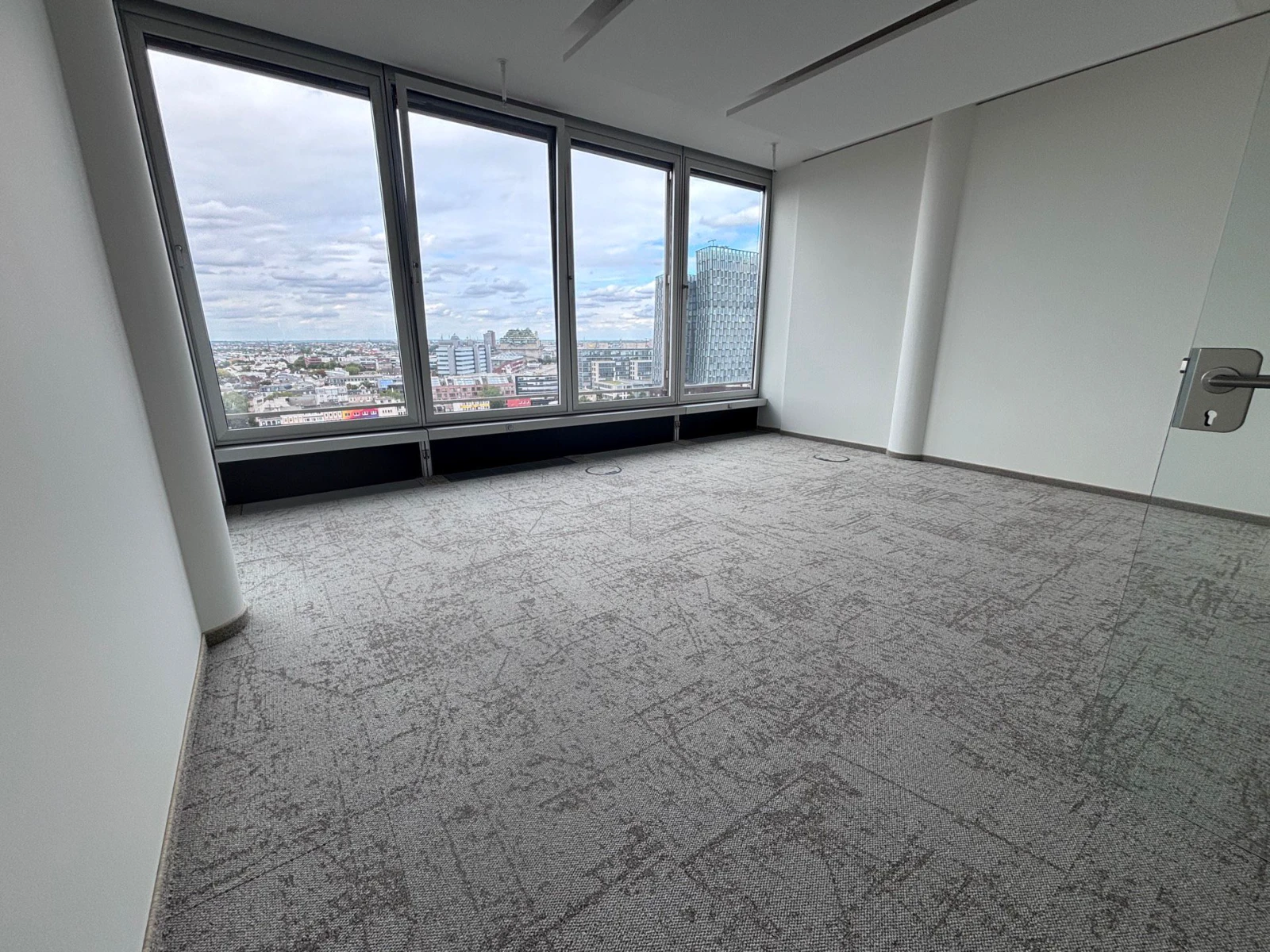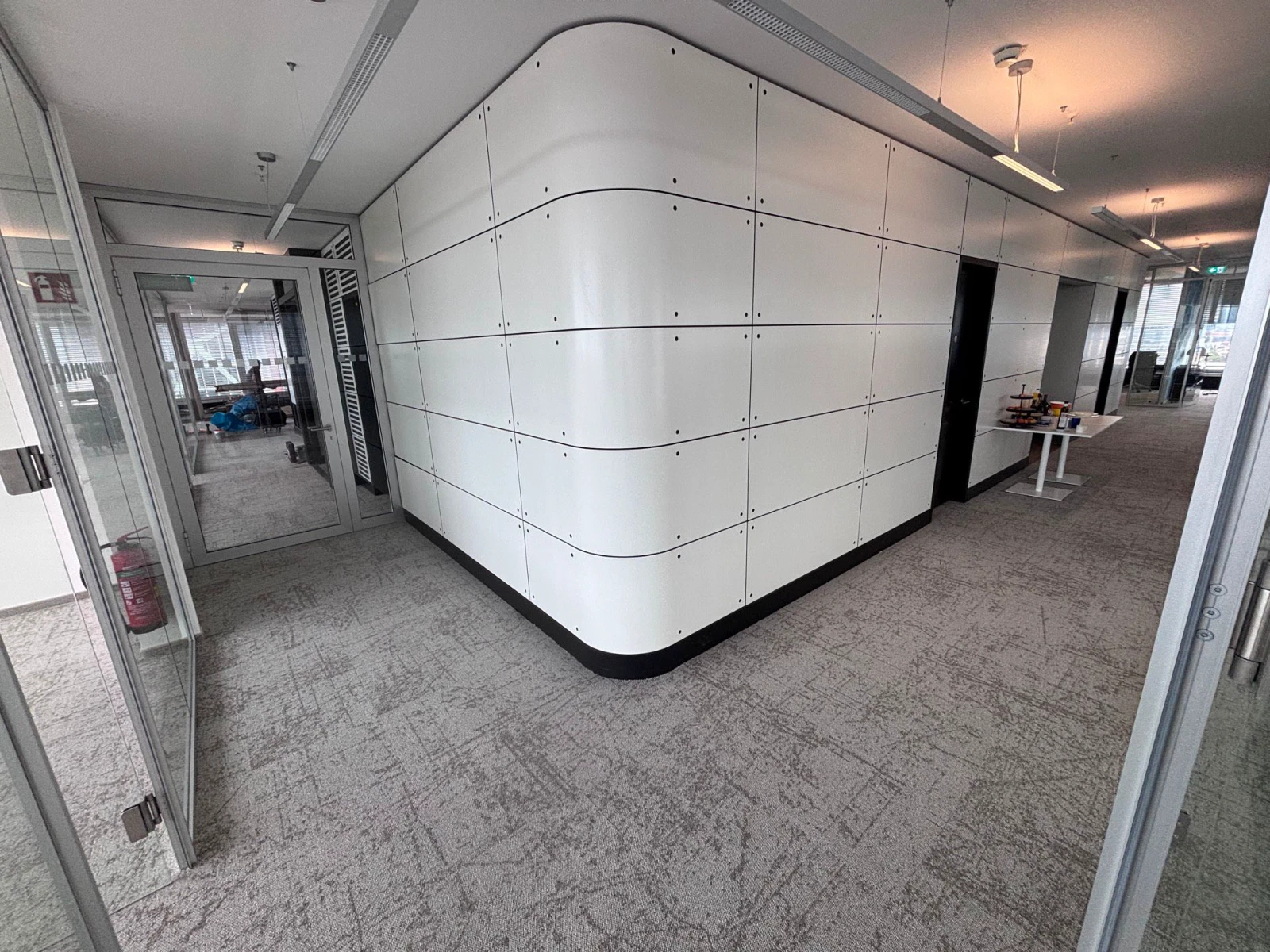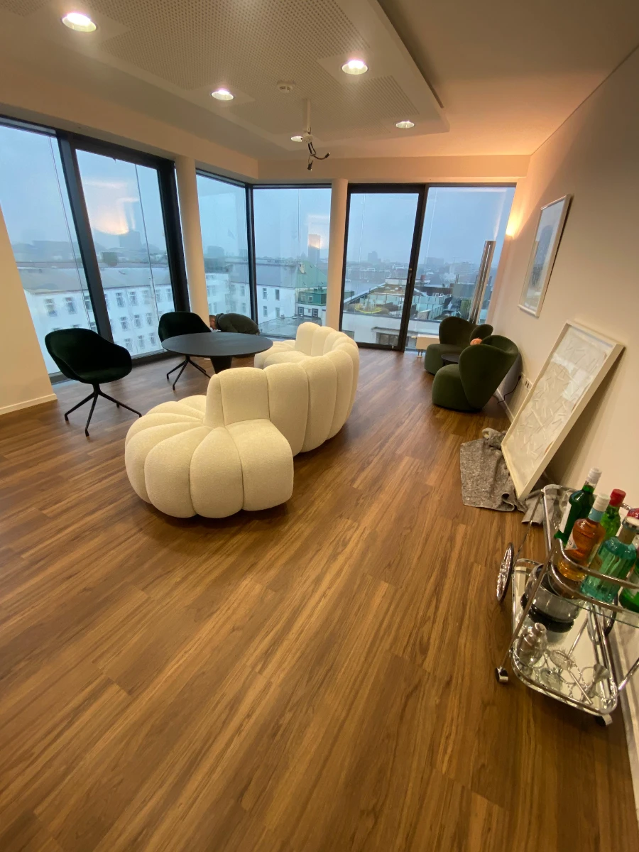 Fachgerechte Untergrundvorbereitung für die Bodenverlegung. Installation von Teppichfliesen (50×50 cm) sowie hochwertigem Vinylboden.