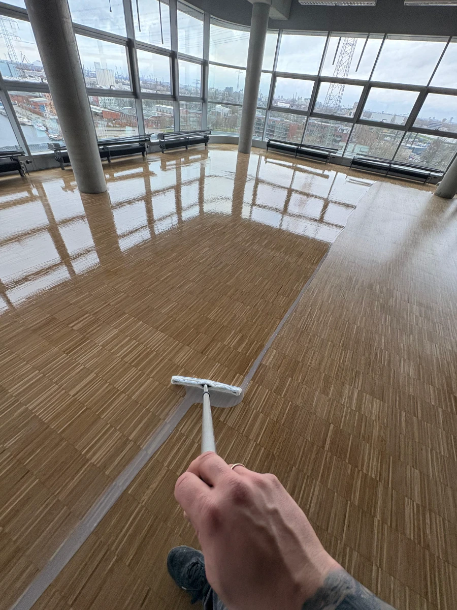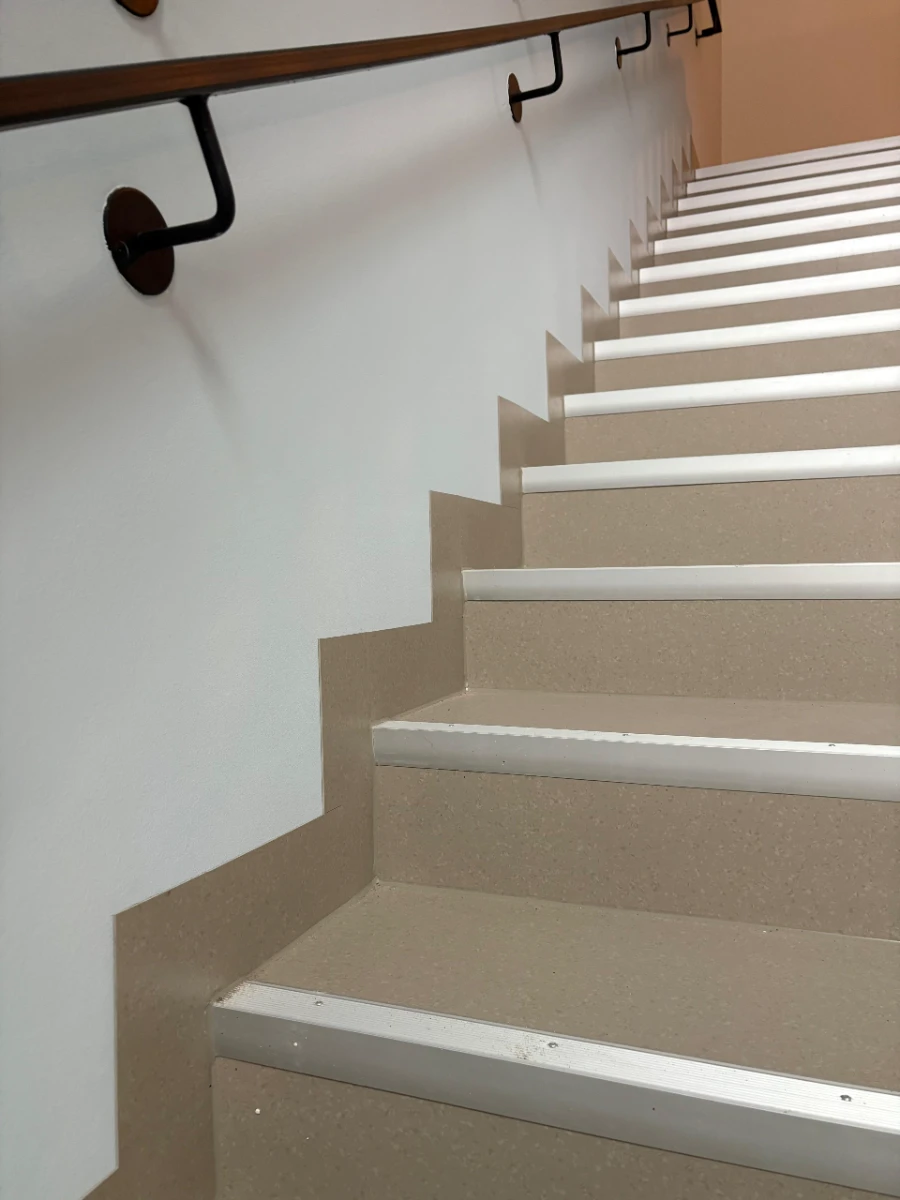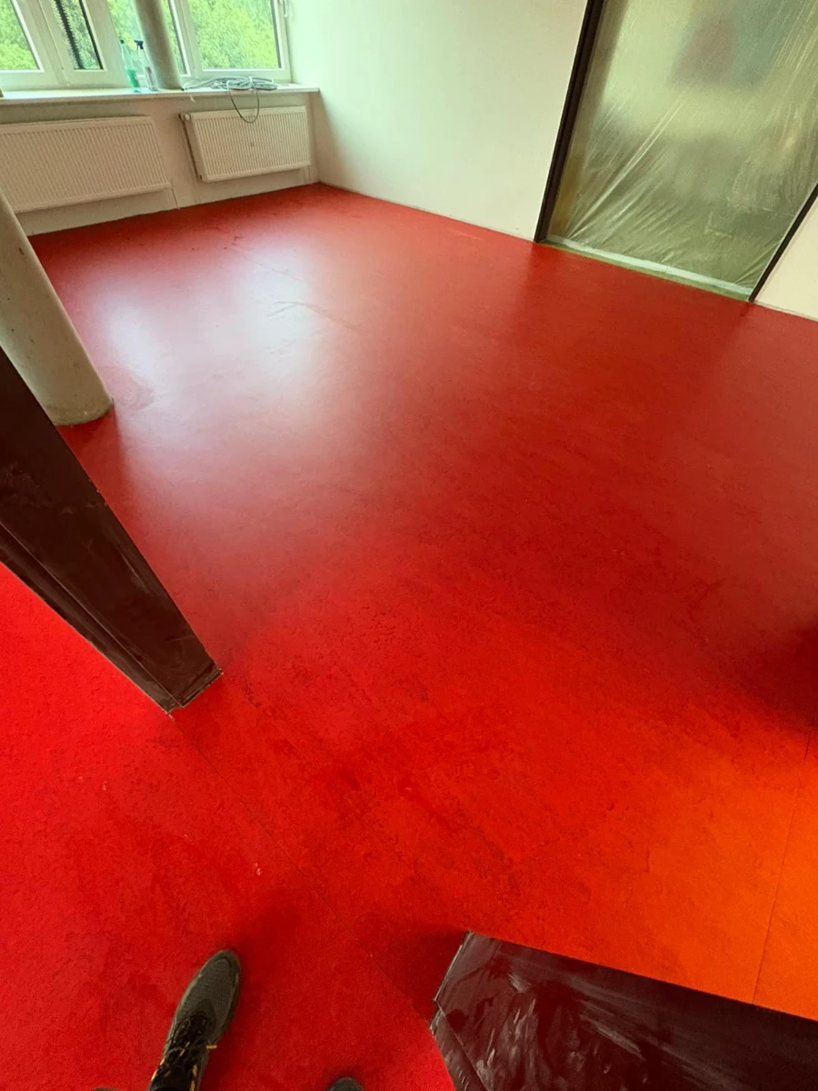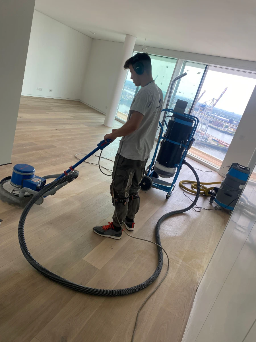 Entfernung von Altbelägen, Abfräsen von Kleberresten und Einbringen von Ausgleichsmasse. Komplette Untergrundvorbereitung und Verlegung des neuen Bodenbelags.
