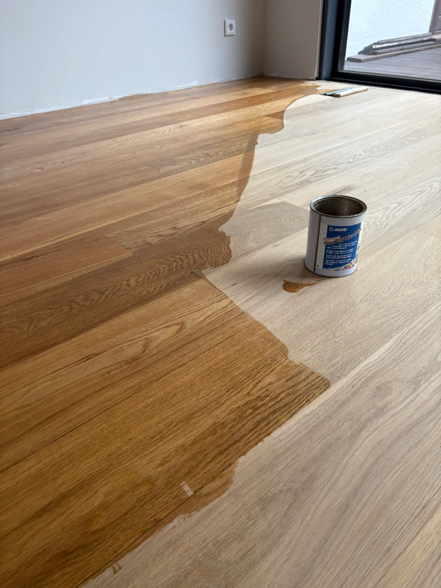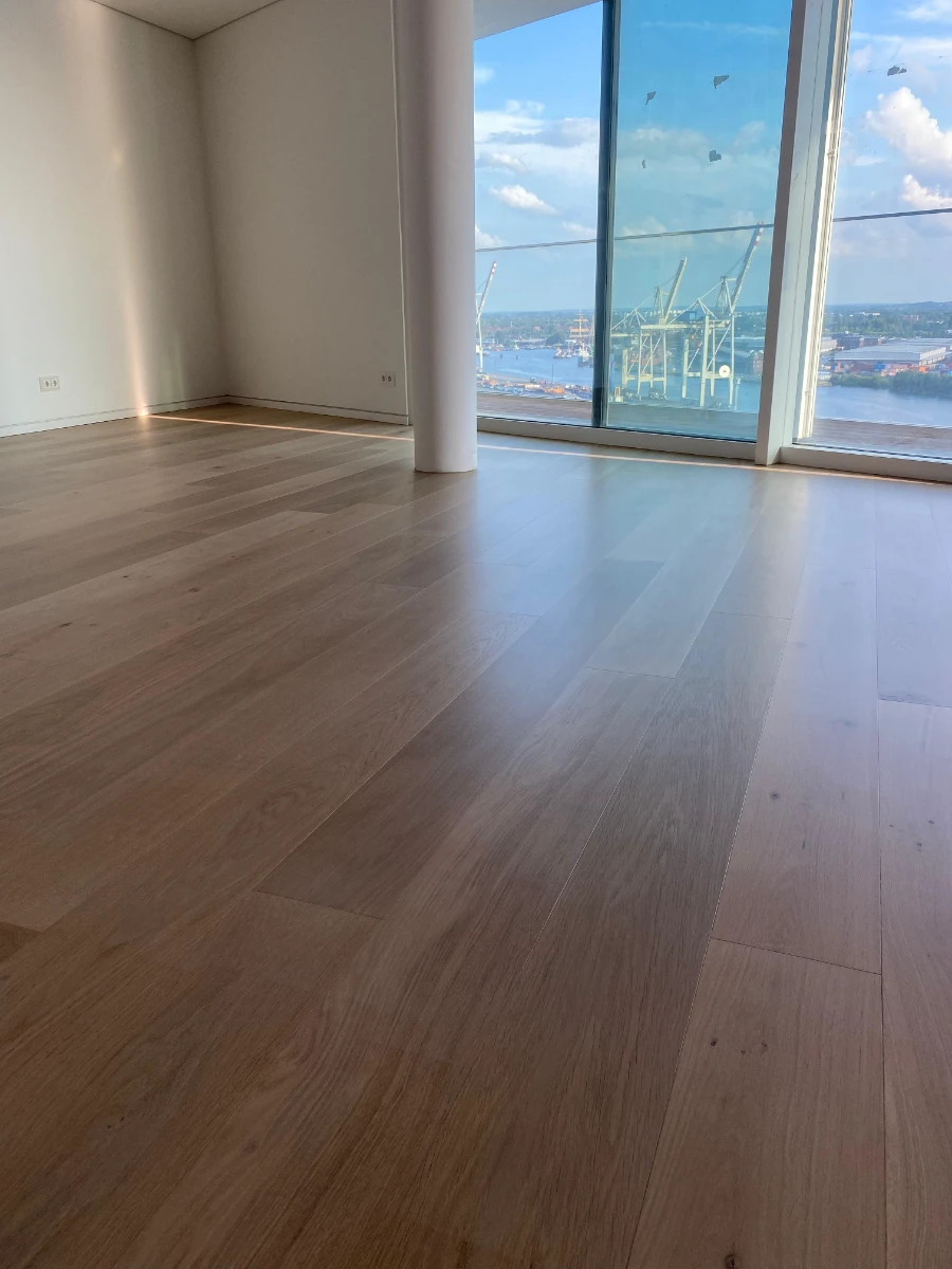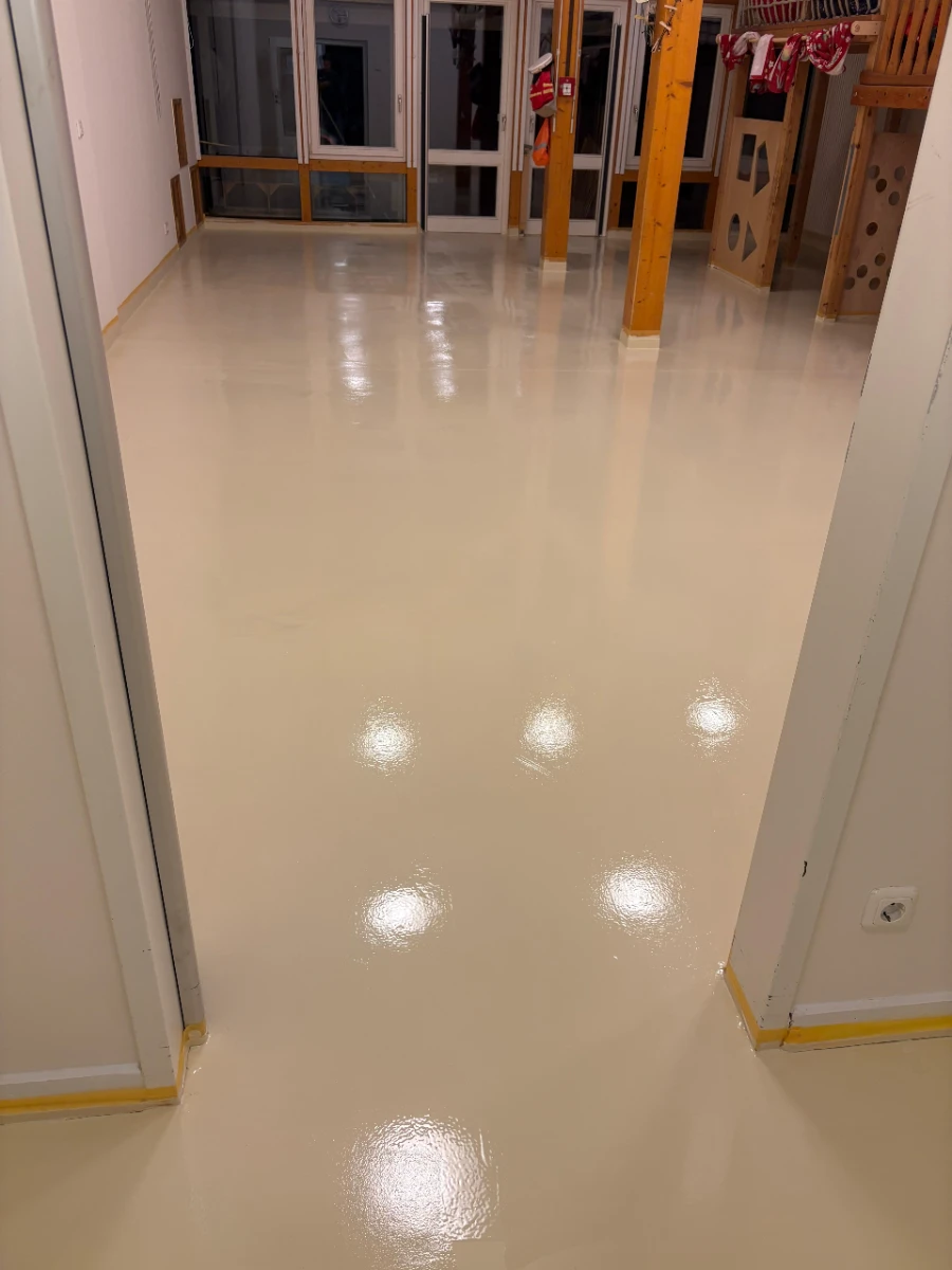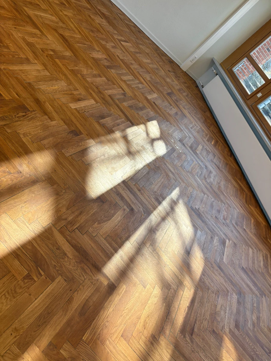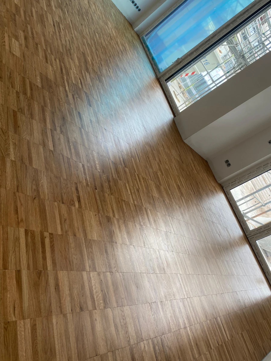 Rückbau von Altbelägen, umfassende Sanierung des Estrichs und fachgerechte Vorbereitung des Untergrunds für die Neuverlegung.